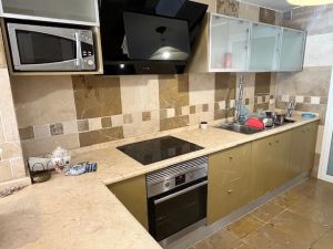 Salón comedor amplio y muy luminoso con vistas inmejorables, es diáfano que integra amplia cocina(con galería) que en su conjunto mide aproximadamente 57m2. La última reforma se realizó en el 2018: cambio de instalación eléctrica, fontanería, baños, cocina y suelos de mármol de primera calidad.