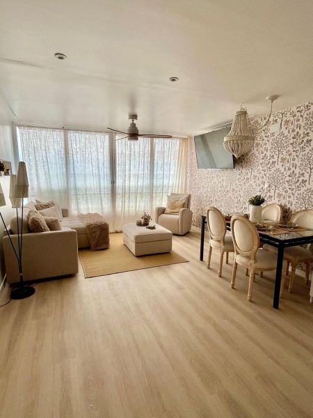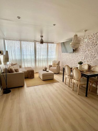 Se alquila este precioso apartamento frente al mar con espectaculares vistas y una decoración impecable. Es un piso muy acogedor y luminoso, con un ambiente cálido y equilibrado en el que han cuidado cada detalle.
